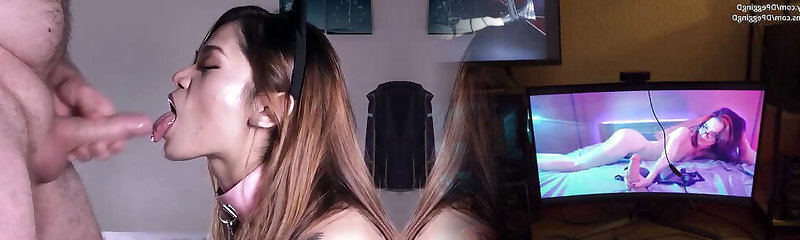 Trans Porn Trans Girl Nutting While Creampied by a Ginormous Uncut Cock, Anal Gape, Moaning