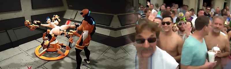 Cyber poke machine in action! Sexy shemale plays with super huge-boobed girl