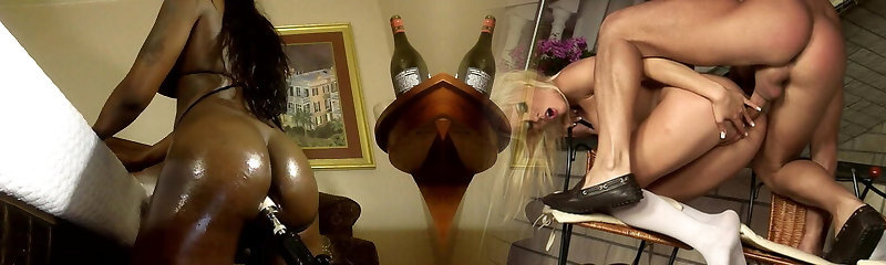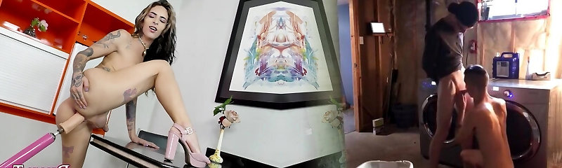 Horny tranny girls enjoy fucking asshole with fucking machine and have fun with stiff dicks